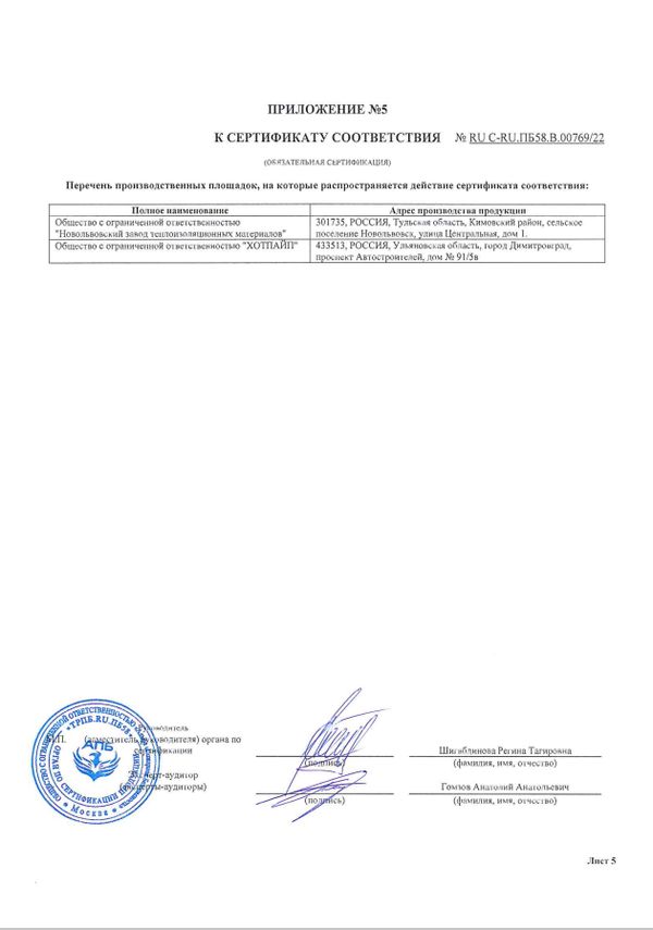 Серийный выпуск по ТУ 5769-002-62815391-2012